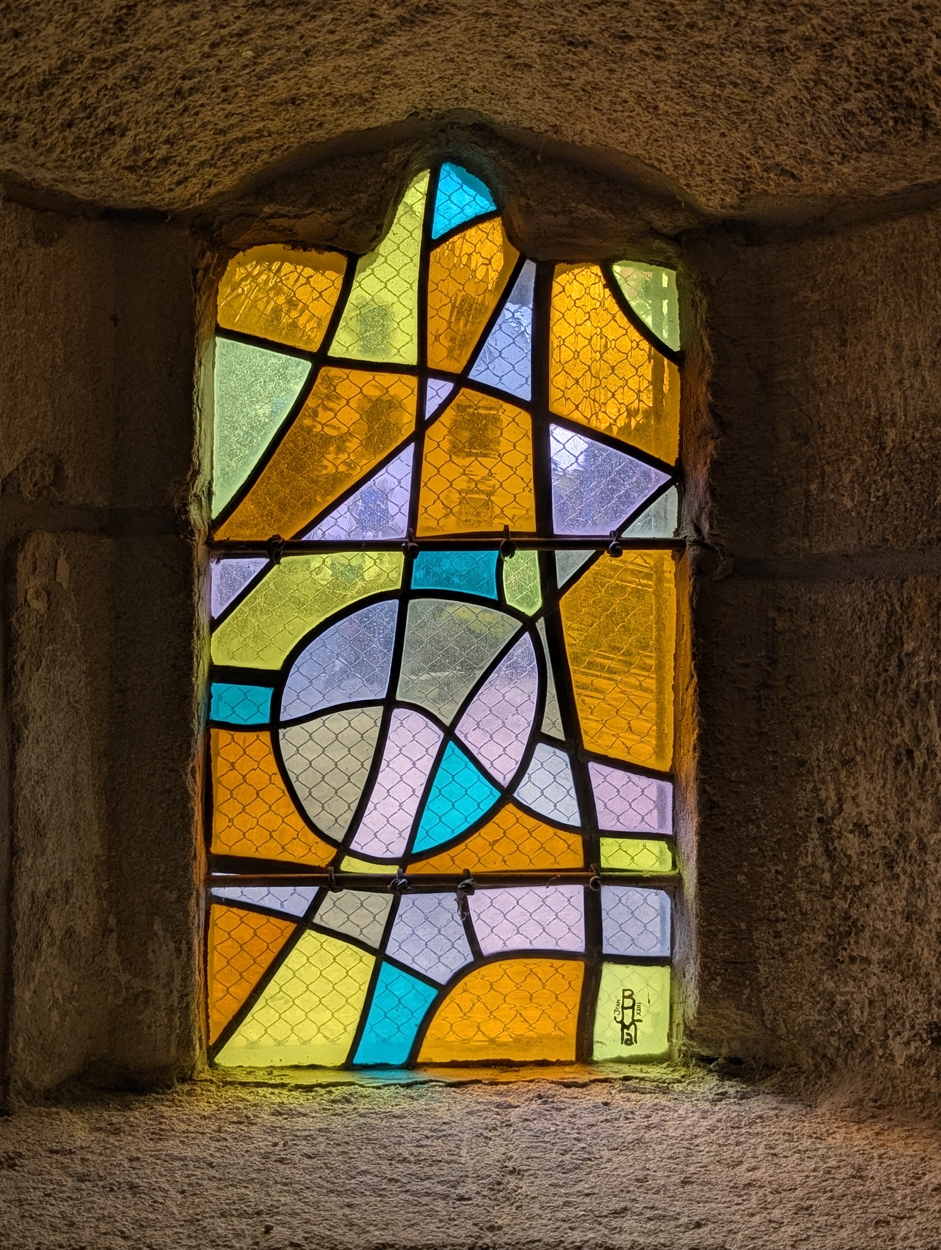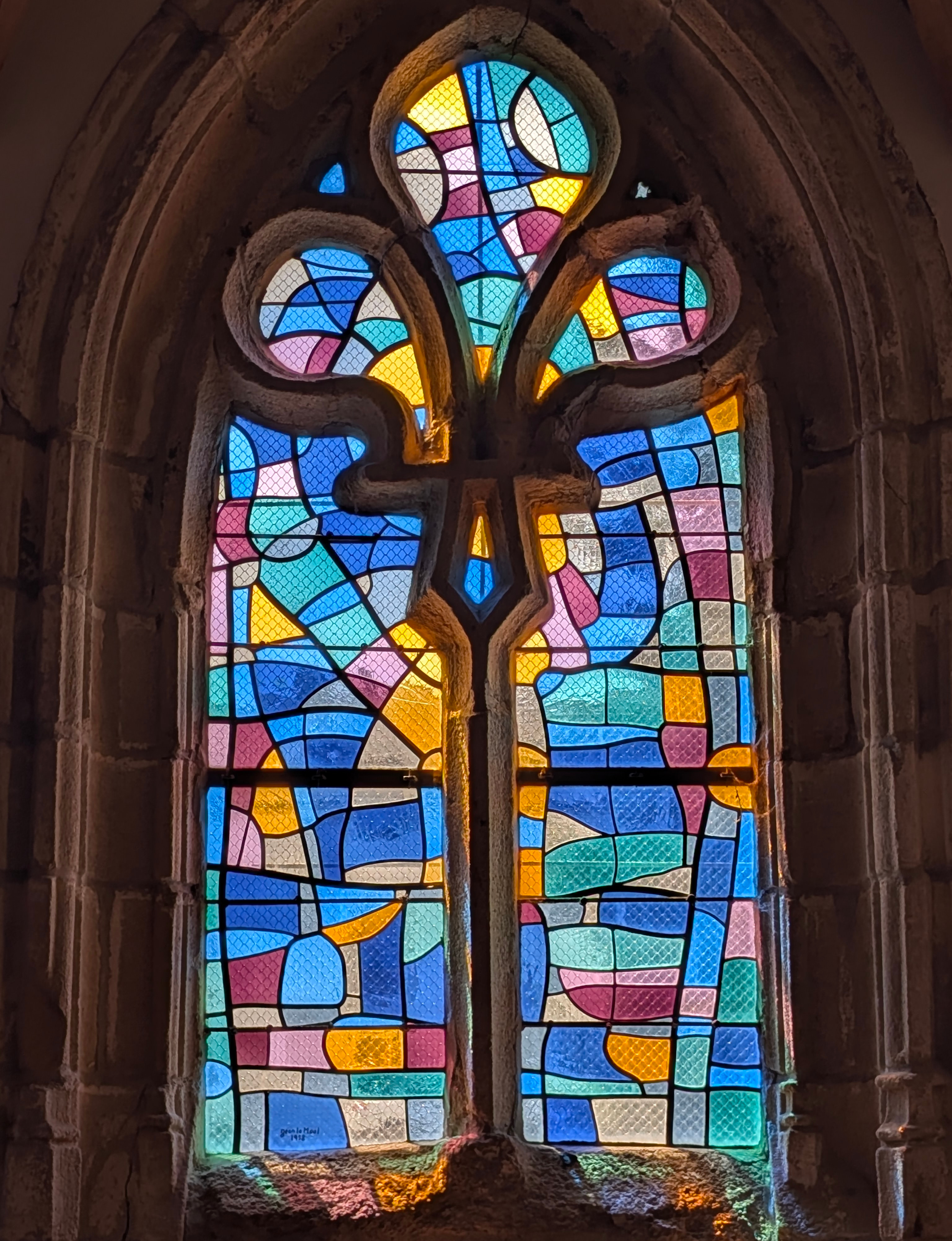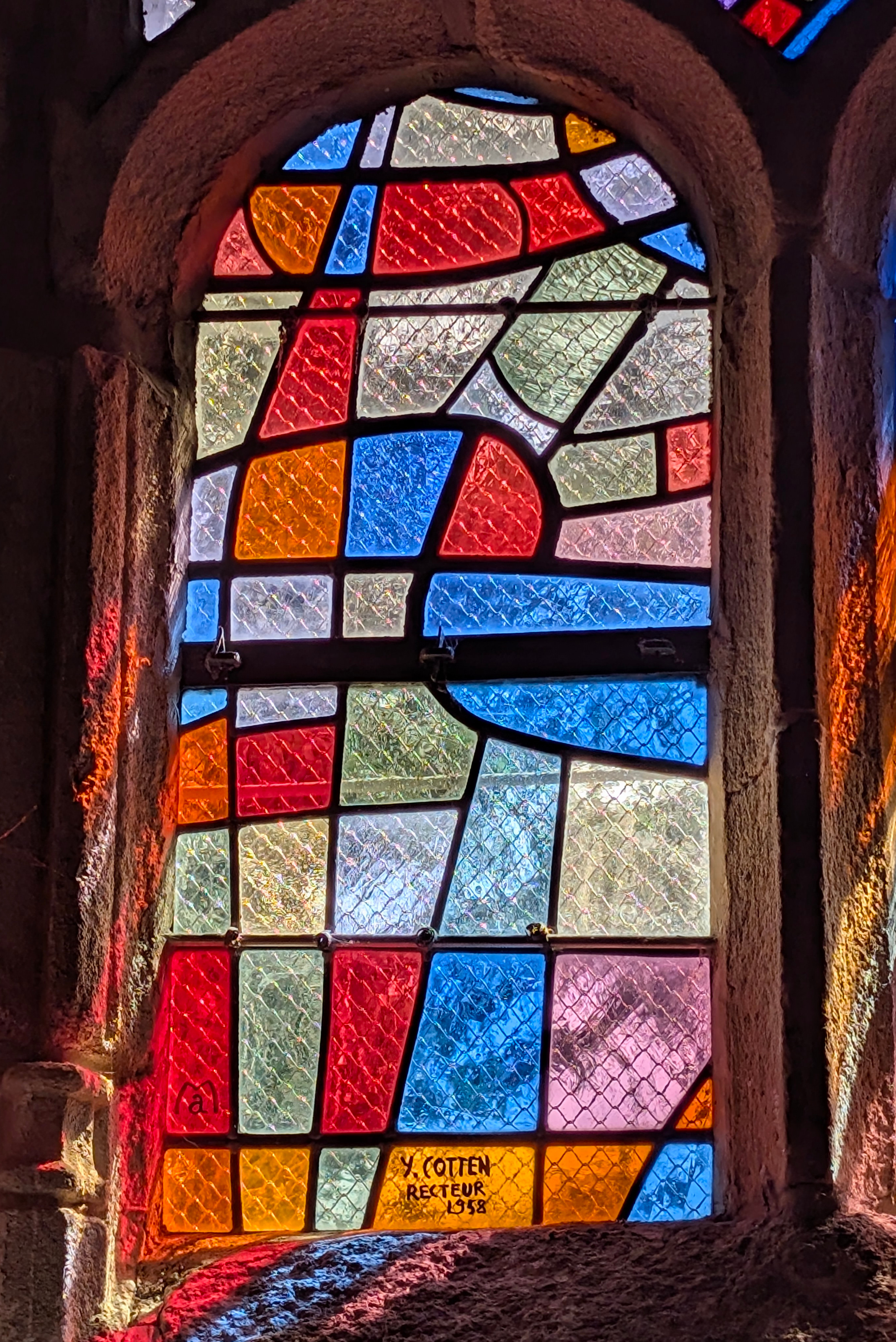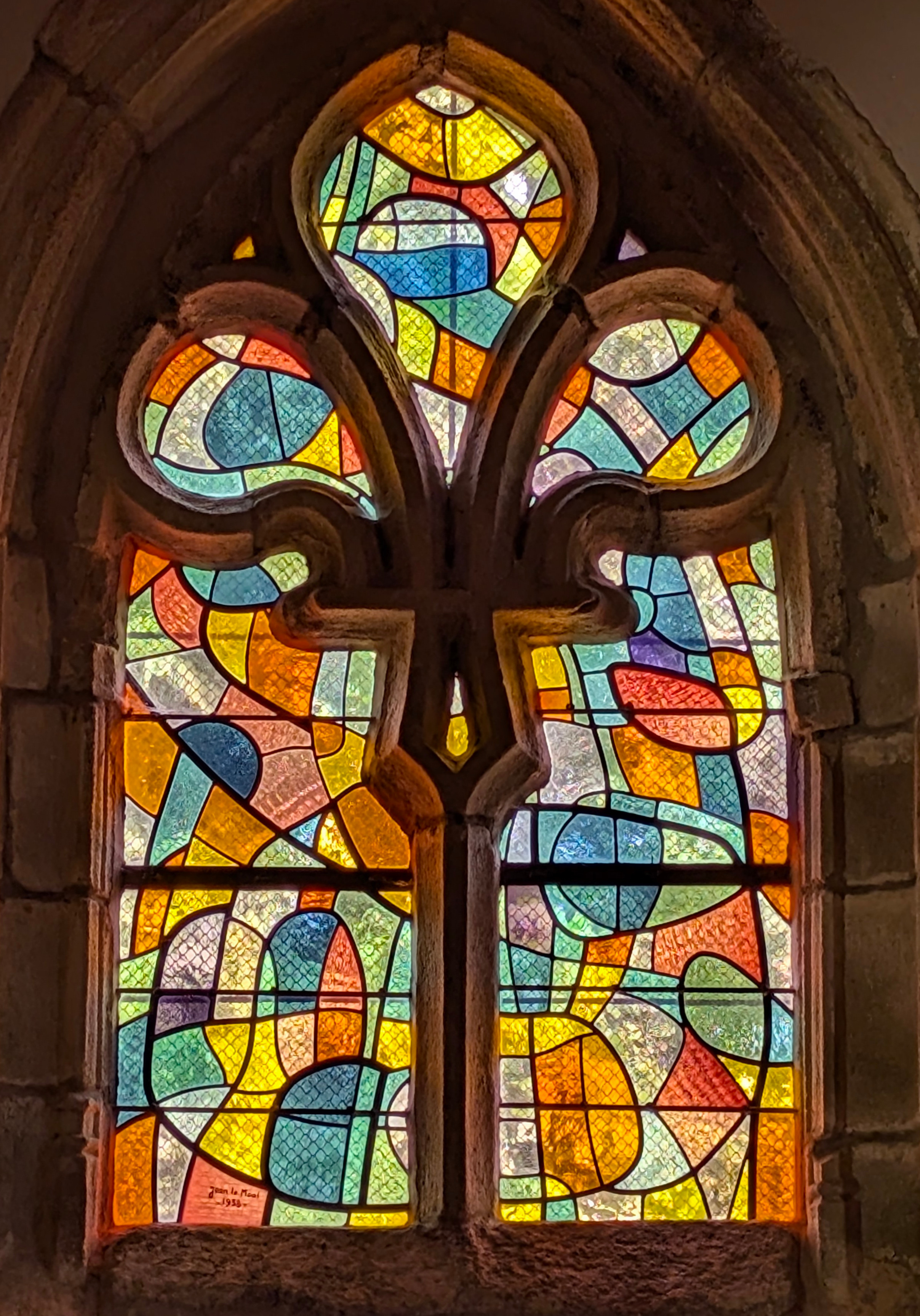 | Emplacement : Trois vitraux pour le chœur (vitrail central : Le Voile de la Vierge) signés Alfred Manessier. |