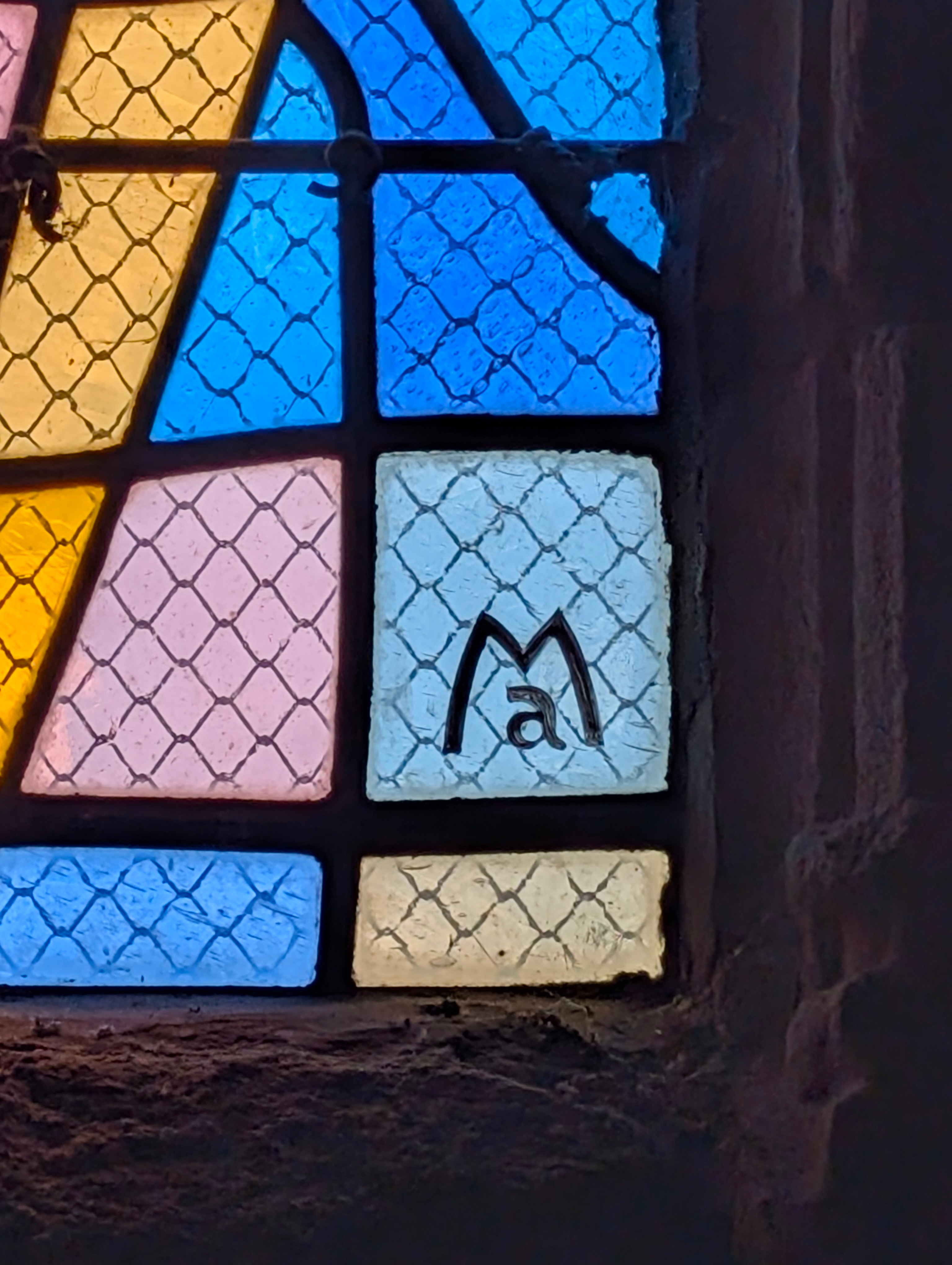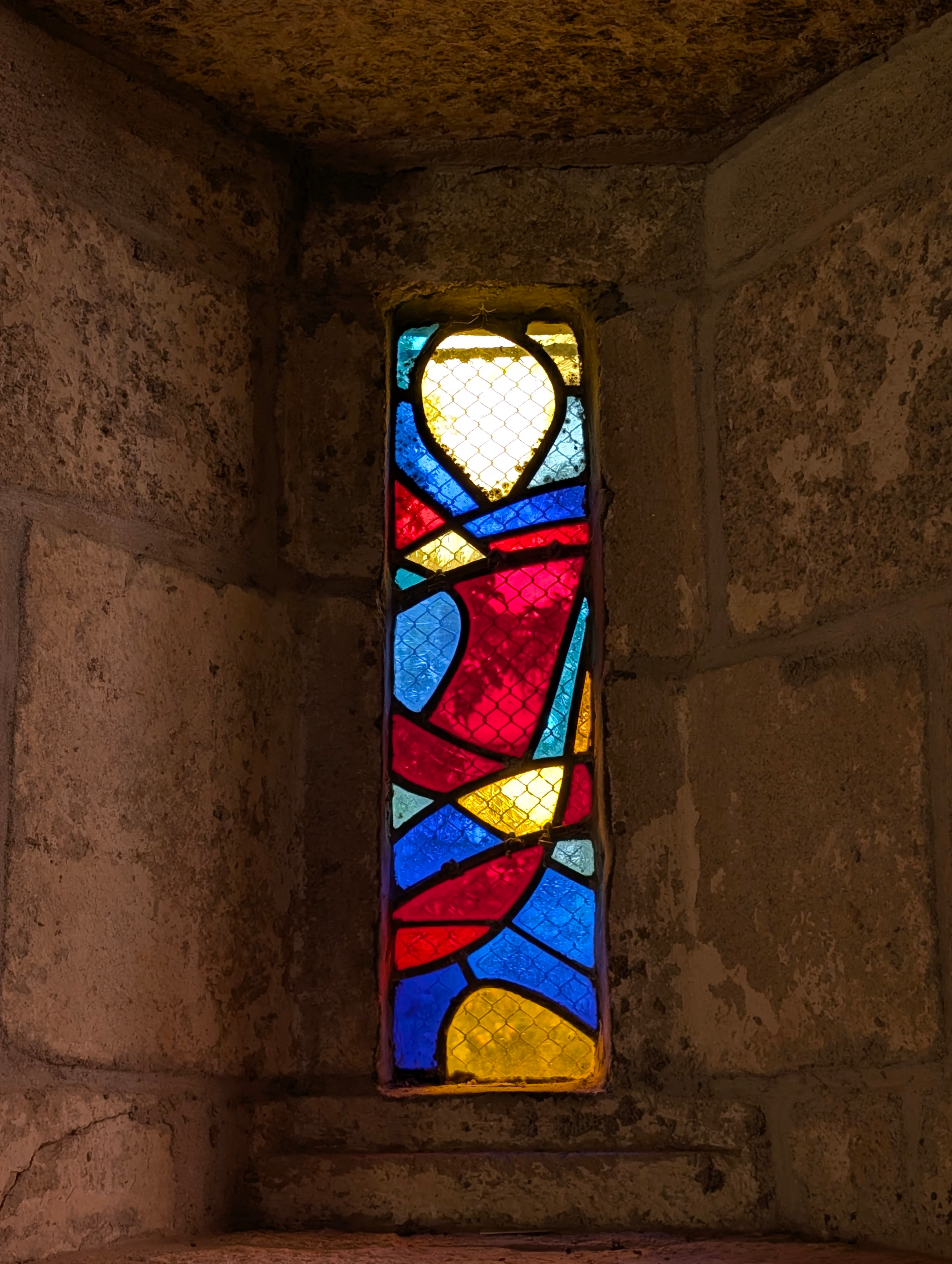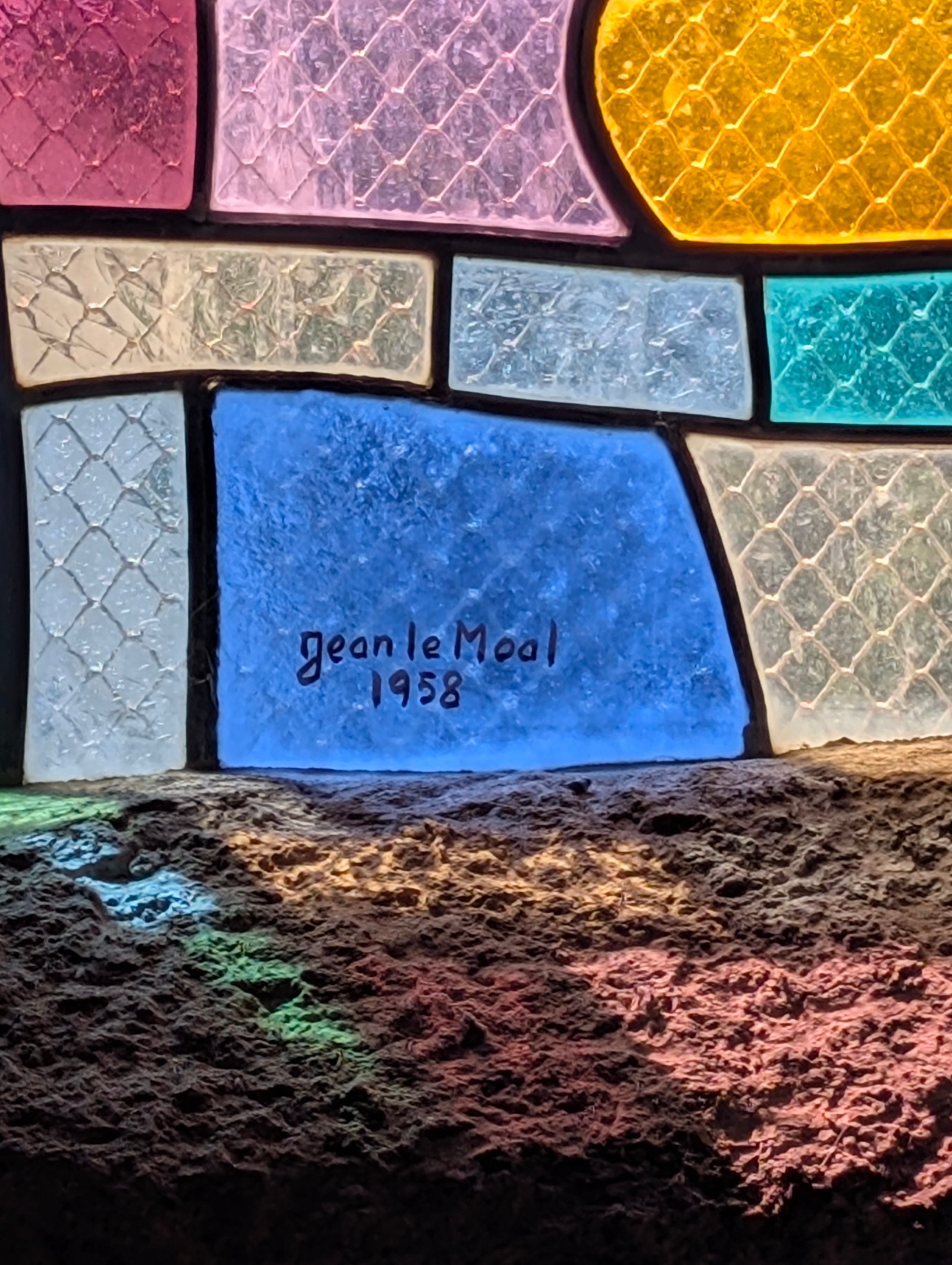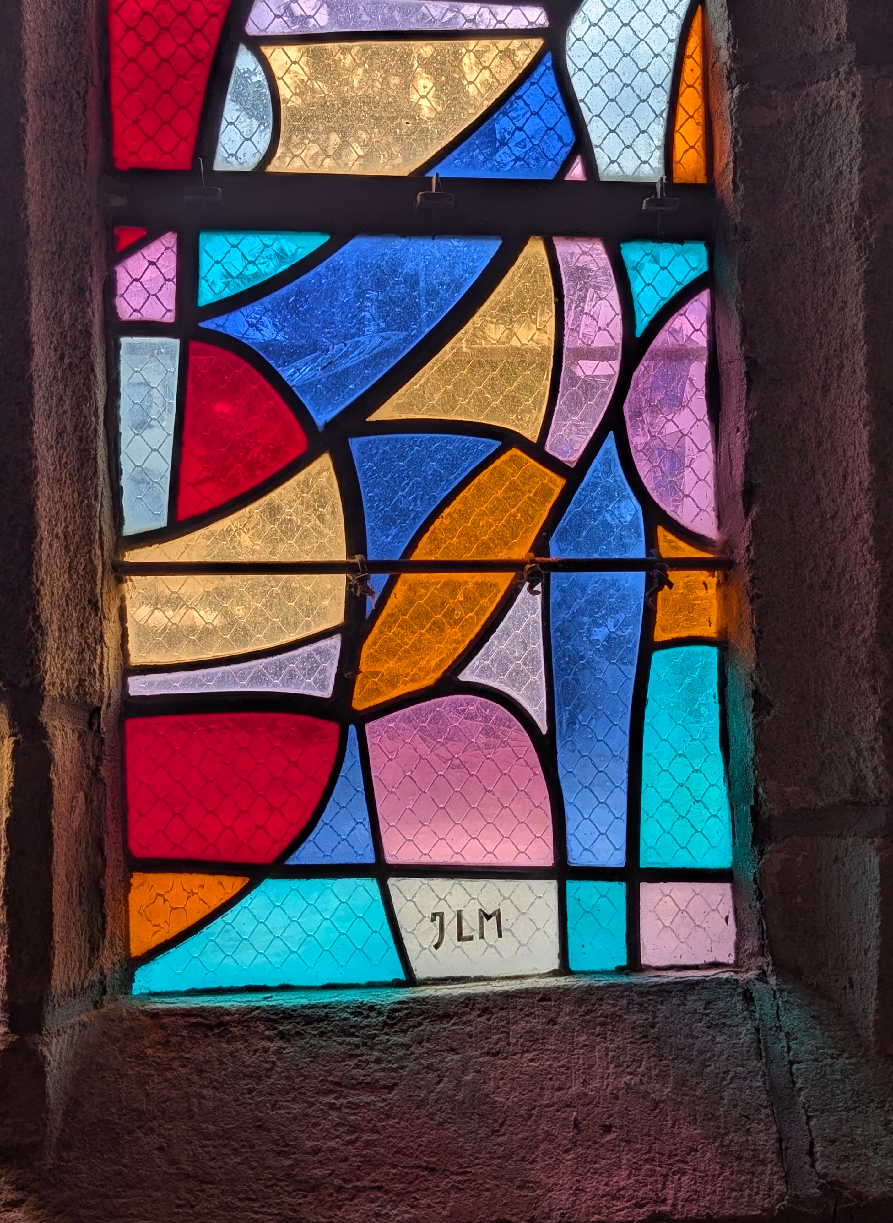 | Emplacement : Trois vitraux pour le chœur (vitrail central : Le Voile de la Vierge) signés Alfred Manessier. |