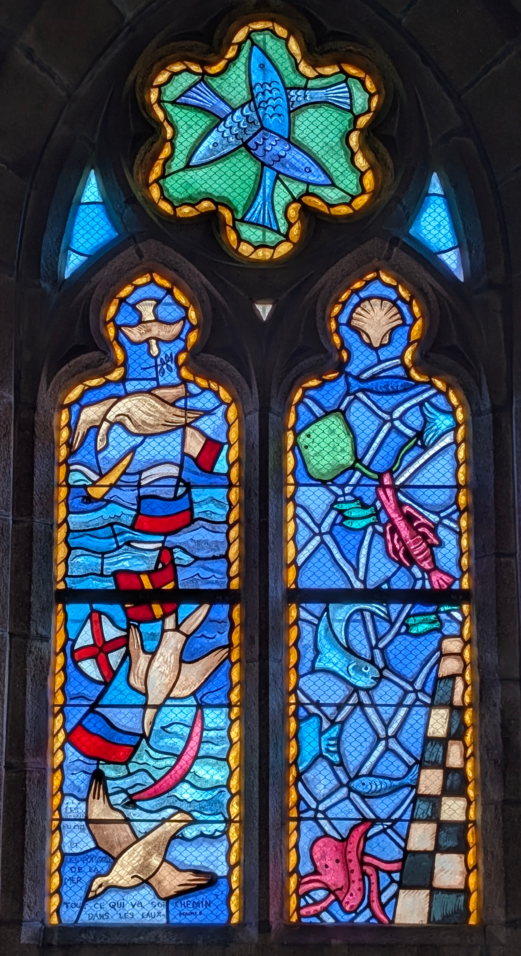 Verrières dessinées et offertes par Mme Anna Coatalen de Loctudy et l'Association Avel Vor de l'Île-Tudy. |