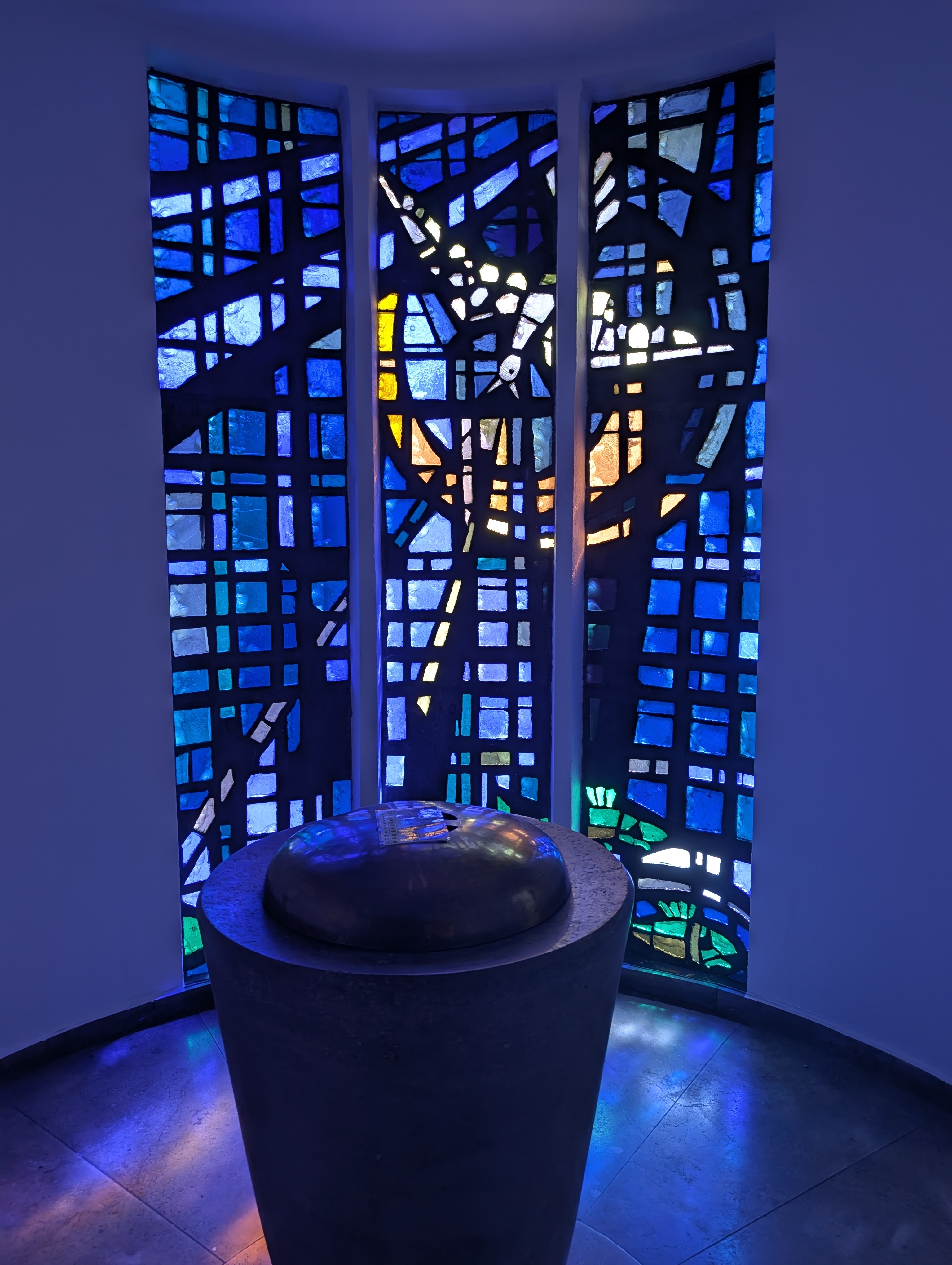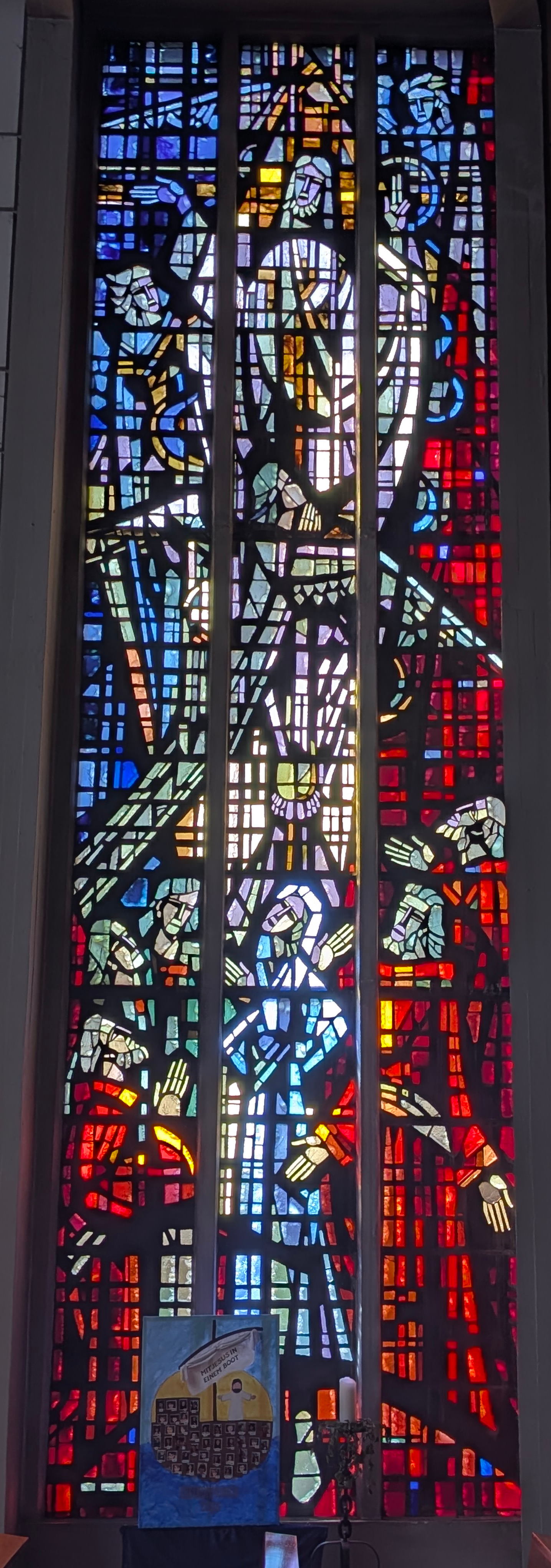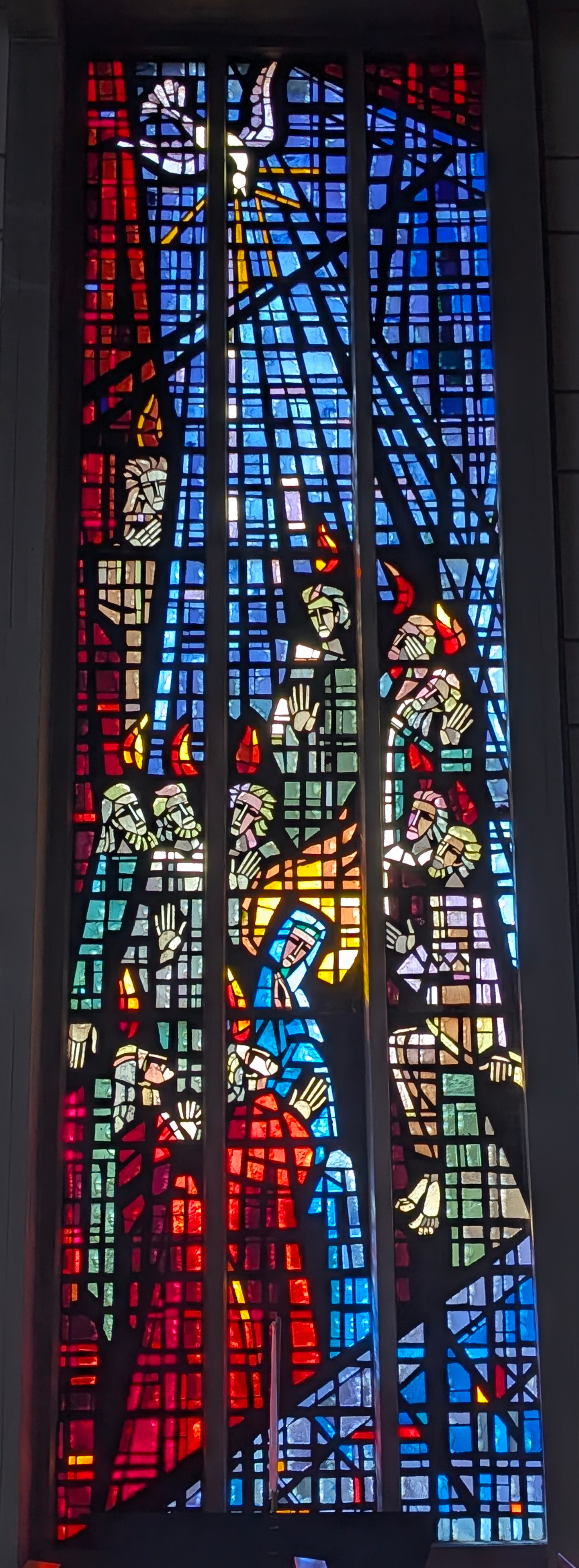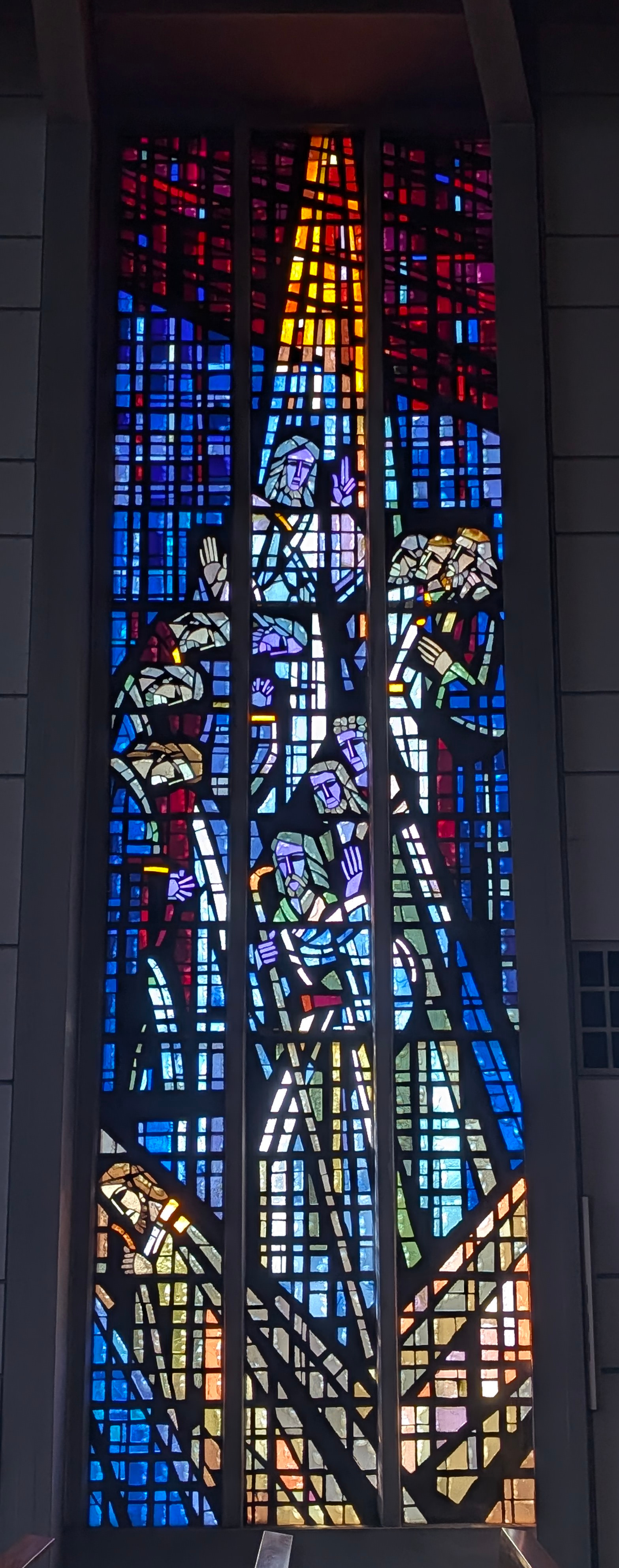 "La vie du Christ" (n°1 : Généalogie du Christ, n°2 : Annonciation, n°3 : Nativité du Christ, n°4 : Baptême du Christ, n°5 : Miracle de Cana, n°6 : Portement de croix, n°7 : Résurrection, n°8 : Ascension, n°9 : Pentecôte, n°10 : Mission des Apôtres, n°11 : L'église avec Ste Barbara, n°12 : Jugement dernier, n°13 : Symbole du baptême) |