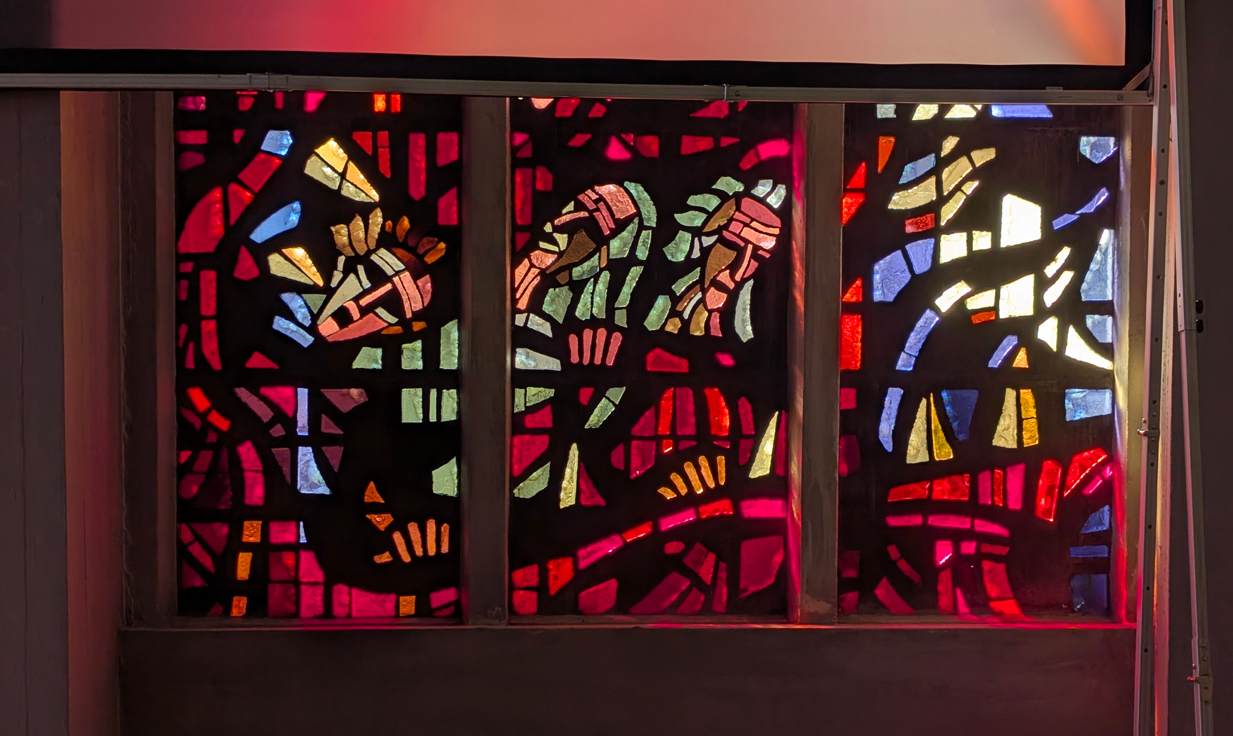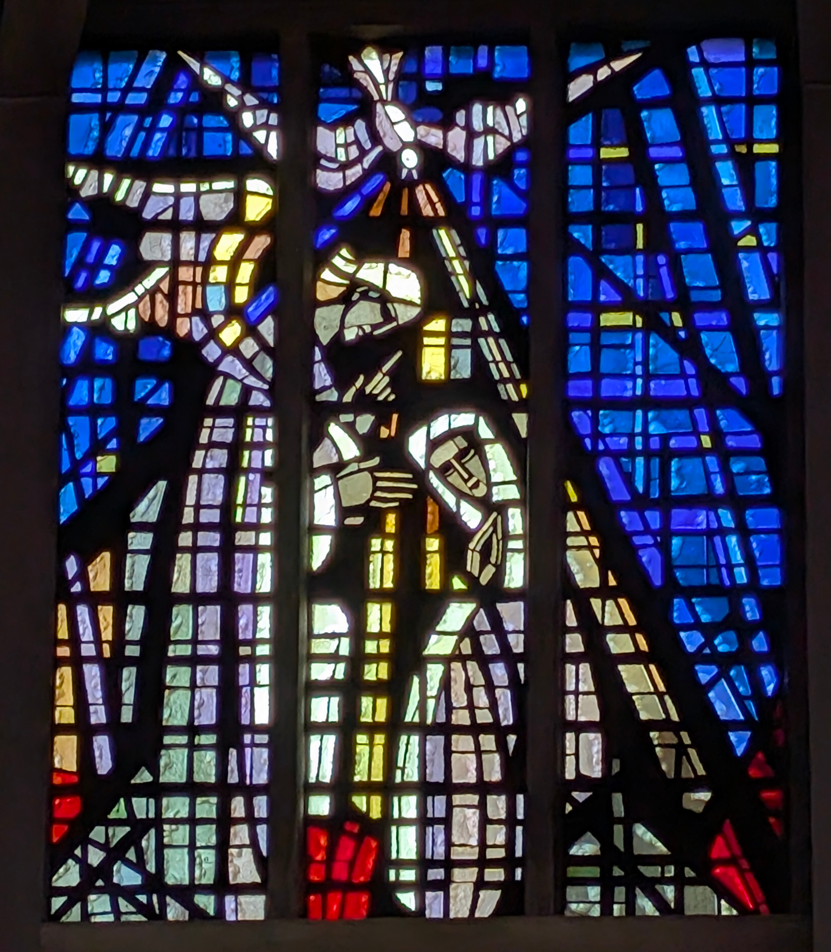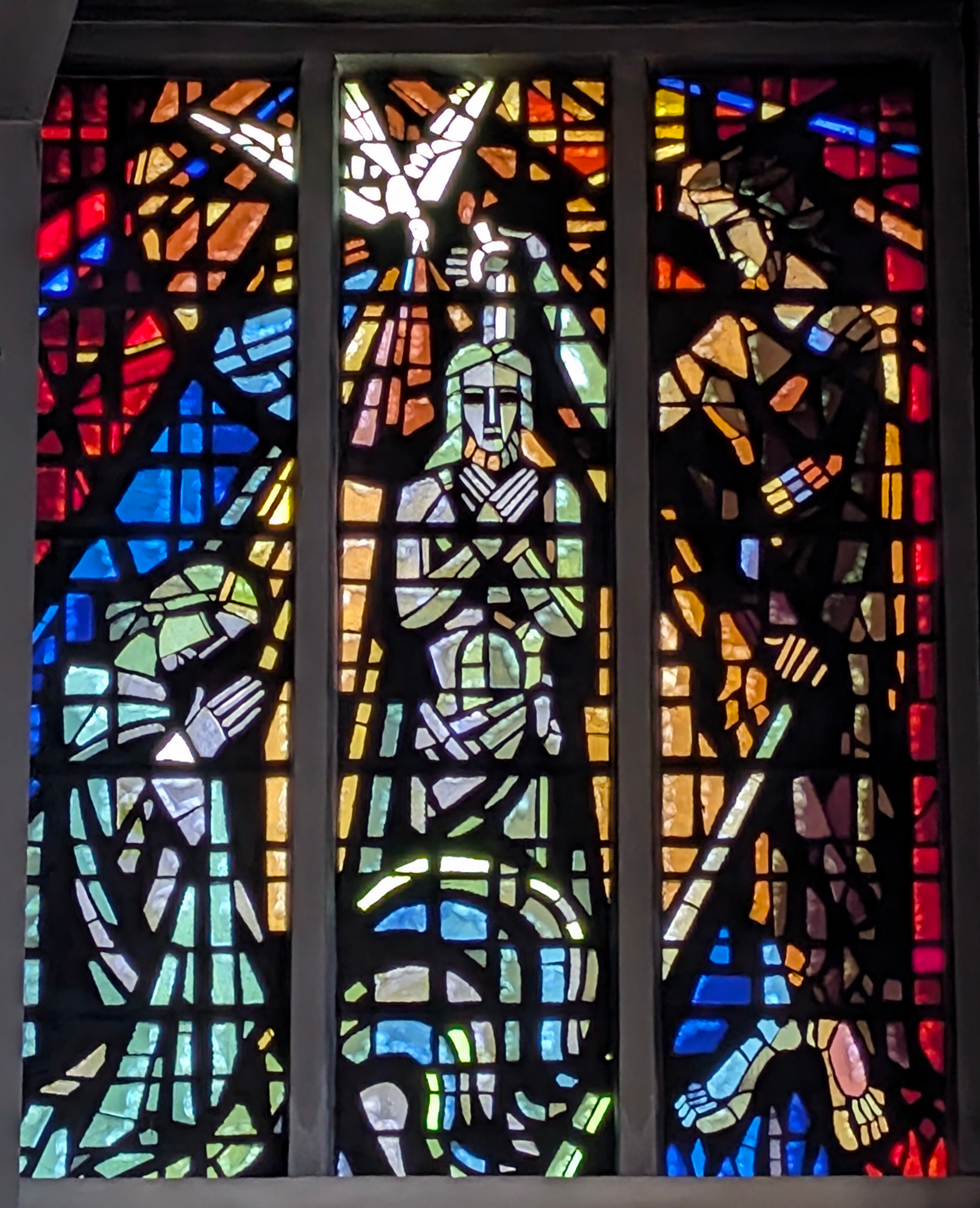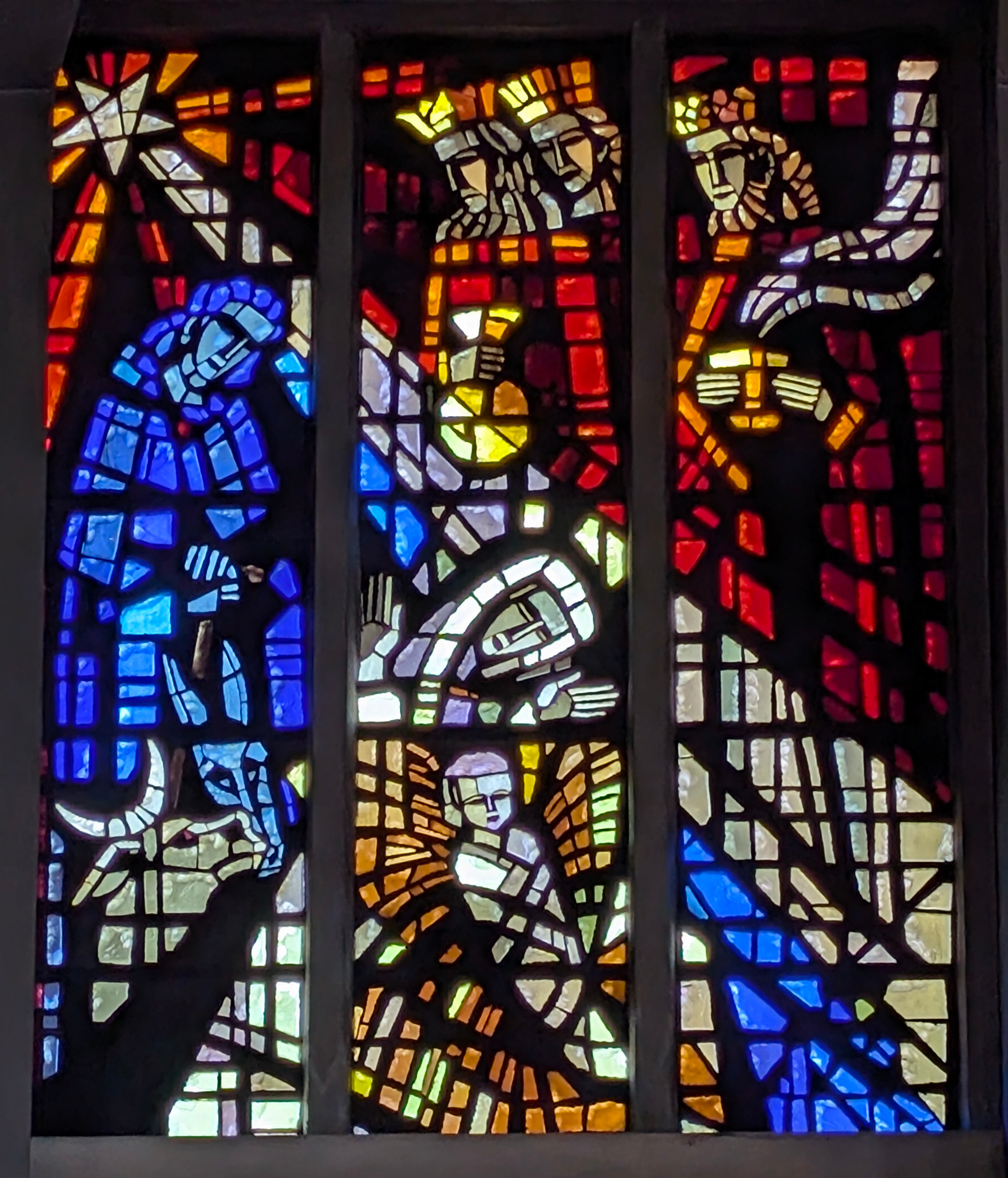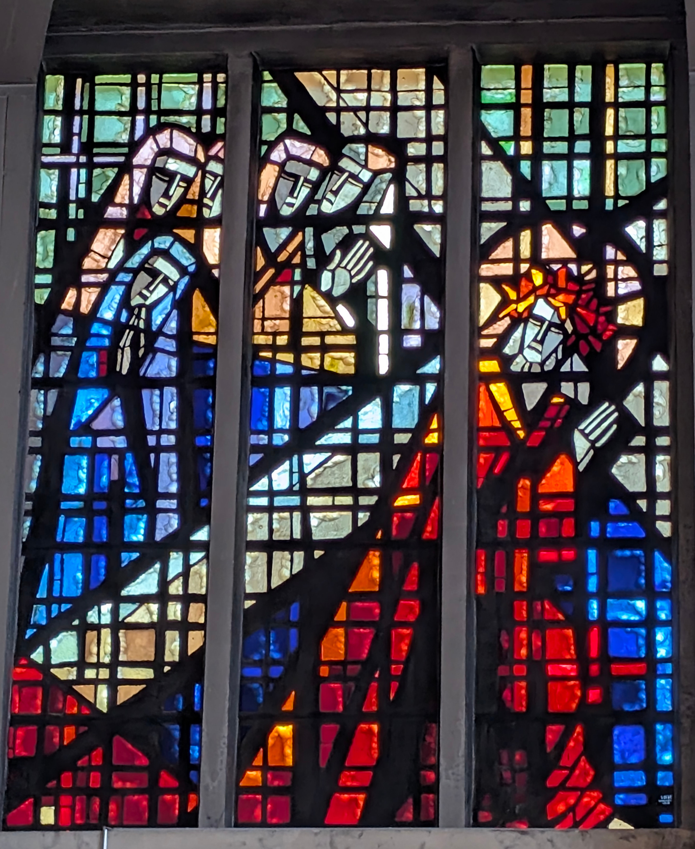 "La vie du Christ" (n°1 : Généalogie du Christ, n°2 : Annonciation, n°3 : Nativité du Christ, n°4 : Baptême du Christ, n°5 : Miracle de Cana, n°6 : Portement de croix, n°7 : Résurrection, n°8 : Ascension, n°9 : Pentecôte, n°10 : Mission des Apôtres, n°11 : L'église avec Ste Barbara, n°12 : Jugement dernier, n°13 : Symbole du baptême) |